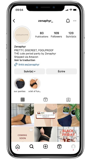• C'est mon premier essai de culotte menstruelle et, bien qu'un peu sceptique au départ, je suis impressionnée par le confort et l'efficacité. Merci Zenaphyr!